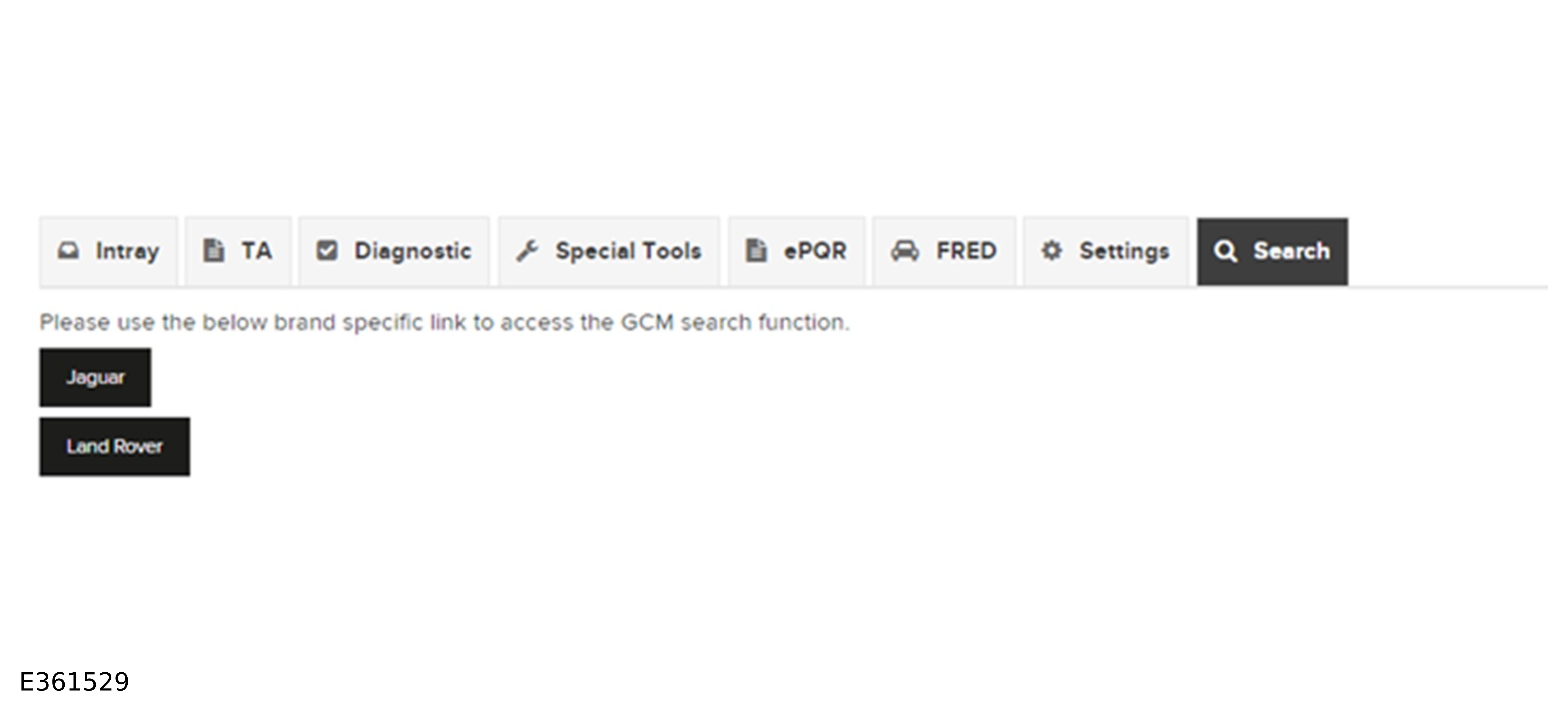 - Select from the options Jaguar or Land Rover to be redirected to a Global Concern Management (GCM) Search page.