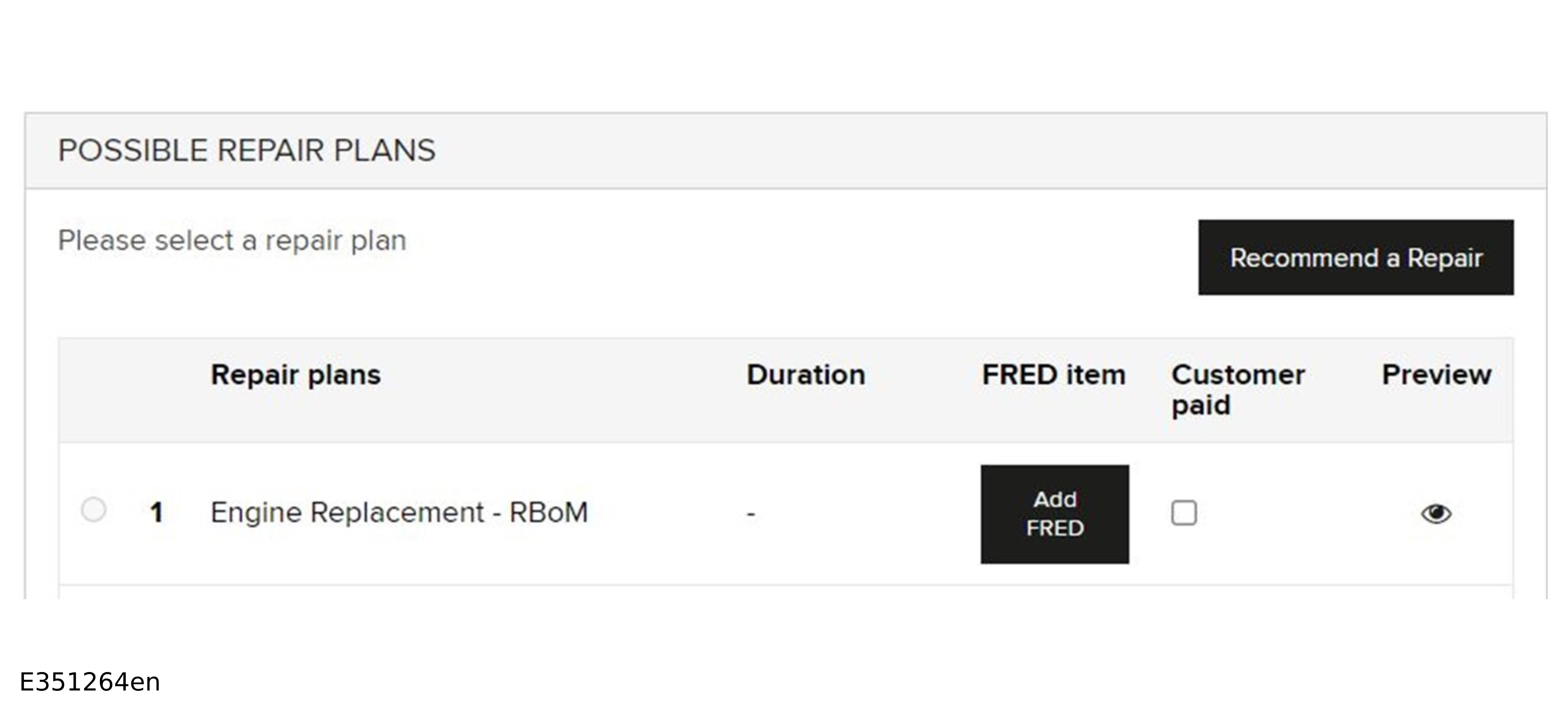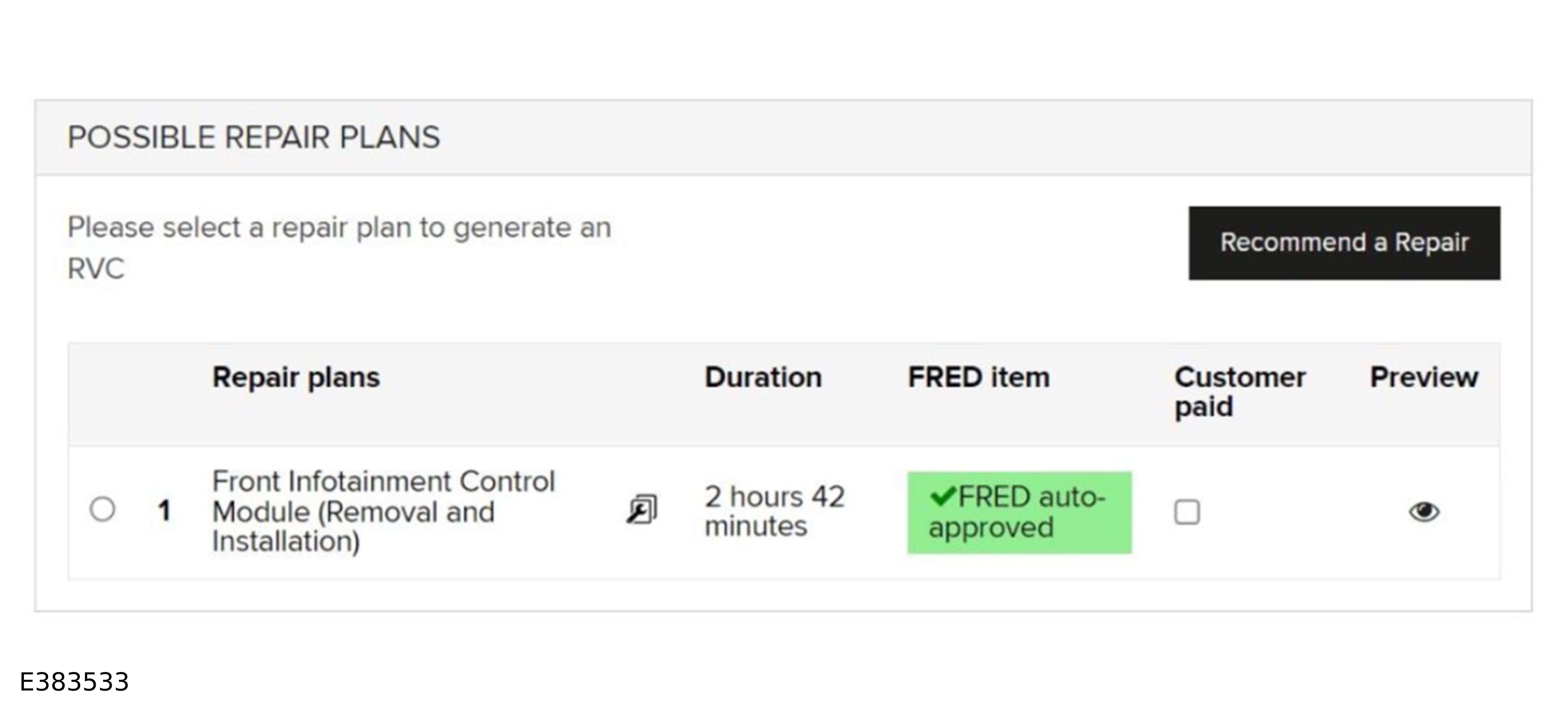 If automated FRED approval has been given, the words FRED auto-approved will be displayed next to the repair plan.